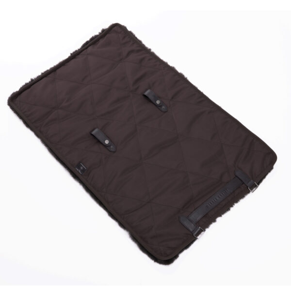 Christ hundmatta Chilly för resan av äkta lammull. Denna matta för din hund kan snabbt rullas ut och rullas ihop igen, tack vare läderspännena. Läderbanden gör att mattan kan bäras som en väska.